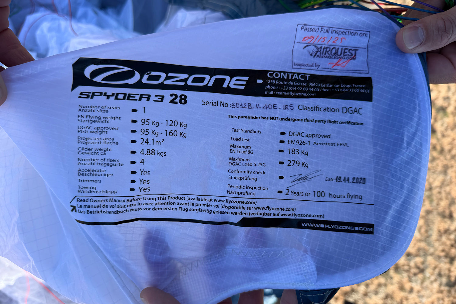 Only flown once and kited once. Fresh inspection from AirQuest attached. Includes Ozone Easy Bag. Save yourself some money on a sweet glider!